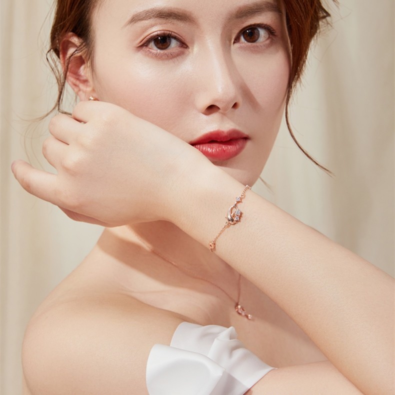 • Unique Rose Dolphin Charm Bracelet For Women In 18K Gold